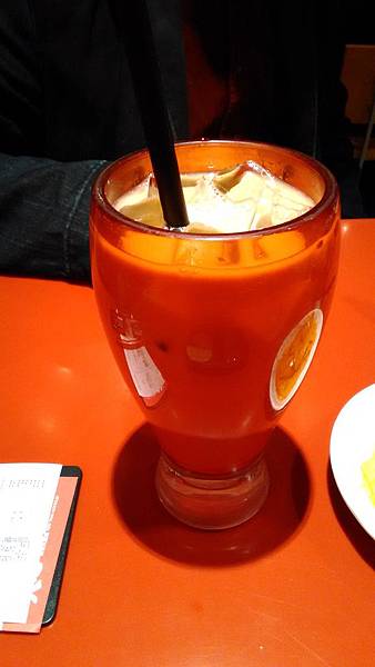 飲料waiter推薦我他們的泰式奶茶,我還特別問會不會很甜,他說不會,事實證明真的好喝不會很甜膩喔!(如下圖所示)