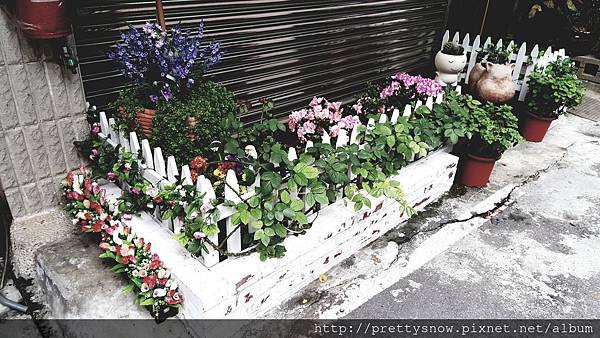 外面有可愛的小籬笆,花草長得很茂盛呢!