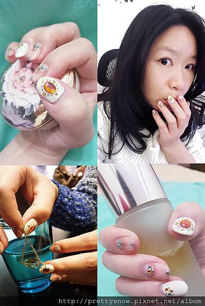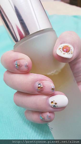 所以碗桂跟美甲師說想要最近超夯的石英粉,感覺跟藍色棕色的暈染放在一起看起來心情一定會很好^^