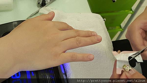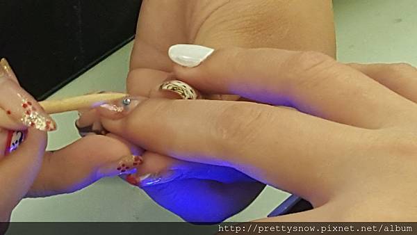 接著要接指甲,在接甲之前美甲師先幫我上層保護膠保護我的指甲^^