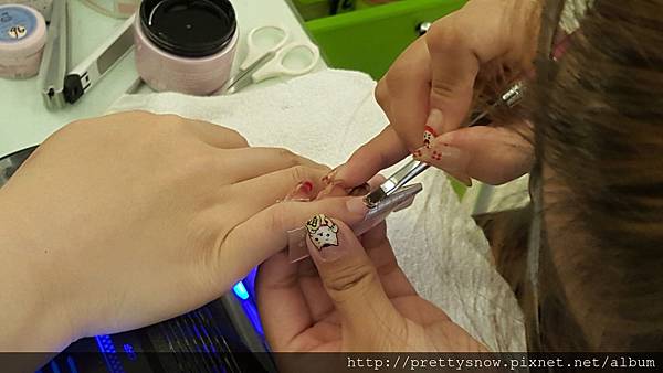 接下來就是難度很高的暈染,看美甲師畫起來很不費力,真心覺得佩服,
