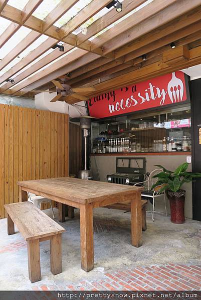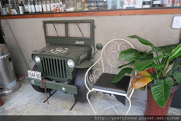 從小維加斯的外觀就大概可看出美式與東方的結合,露天的實木座位和軍綠吉普車放在一起真是新奇讓人很想一窺究竟。