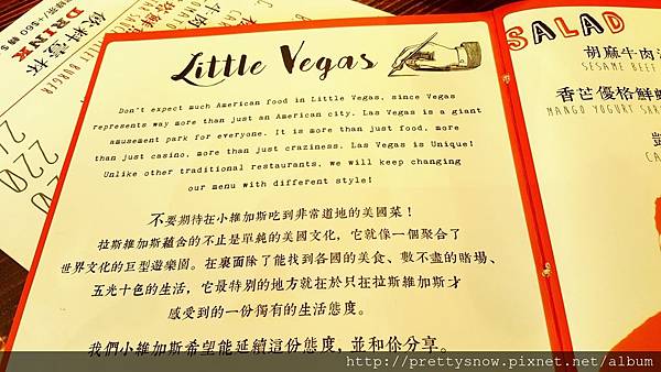菜單一開始就說明了小維加斯是用美食來聚集各國文化,