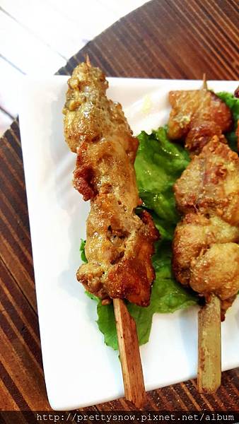 這盤炸咖理沙嗲雞肉串是招待,主廚最近在嘗試的菜色,還沒在菜單上,