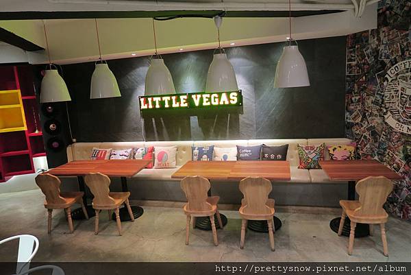 小維加斯還有地下室,布置的風格跟樓上不太一樣,美式風格很強烈,色彩飽和厚重。