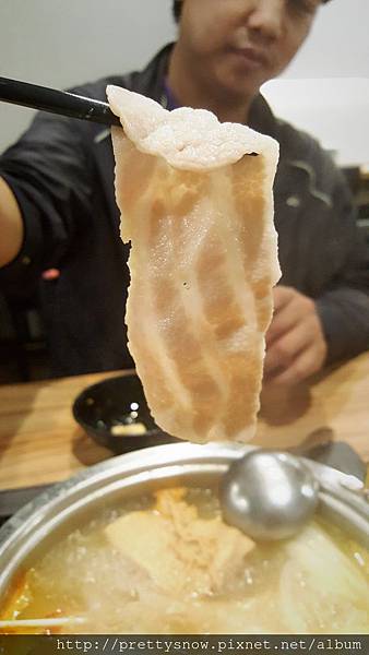 酸菜白肉鍋碗桂和阿國一致覺得豬肉最搭,點了松阪豬,一樣沒加量。