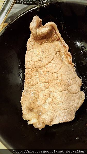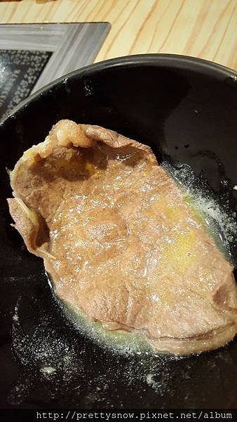 將澳洲霜降和牛涮幾下拿起來, 還有一點粉紅,