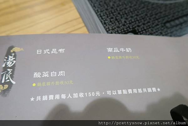 品川鍋物很簡單的提供三種湯底,而且可以共鍋,除了日式昆布鍋之外鍋底要再加收50元。