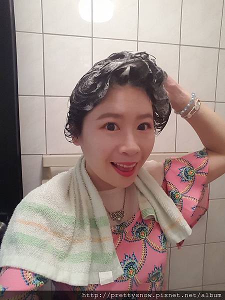 在洗頭過程碗桂莫名的開心,好呆喔XD