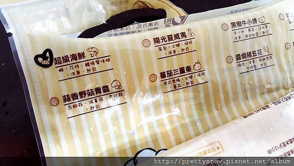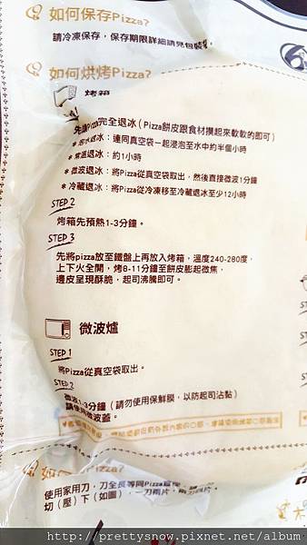 每包都是真空包裝,包裝背後還有詳細說明烹調披薩另外也有用簽字筆標示是哪種口味的披薩喔。