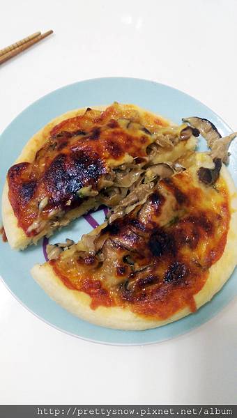 裡面的料多到滿出來,木耳披薩應該要來個暱稱叫爆料披薩啦![]()