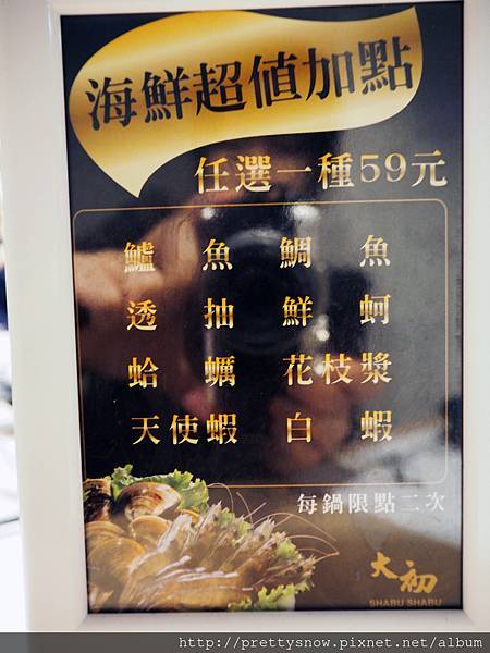 一個火鍋可以加點兩種海鮮,我們兩個火鍋可以點四種