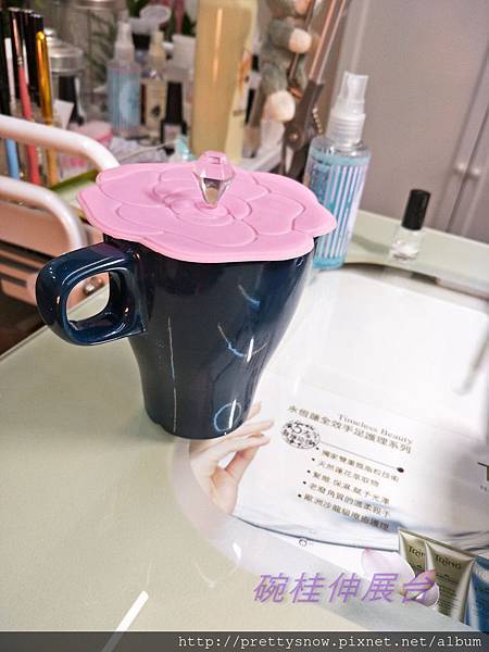 GINI美甲師送上溫熱開水,也有餅乾零食可以補充熱量喔XDD