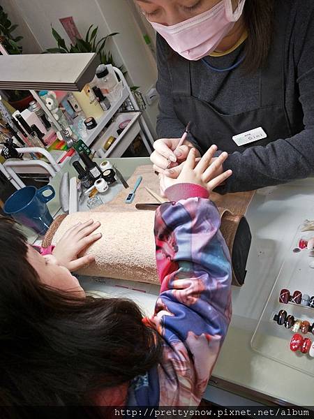 沒看錯喔,GINI美甲師在幫小甜蜜做美甲(笑歪~
