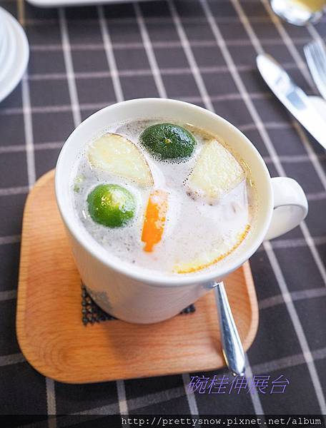 因為小甜蜜還有一些感冒,所以點個溫水果茶給她喝,
