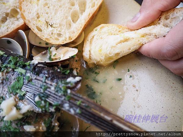 法式手工麵包吃起來很軟鬆,咀嚼後有淡淡甜味,可無限續喔!