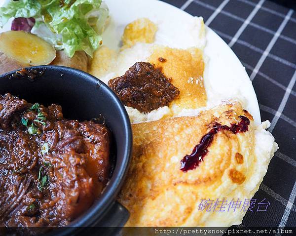 舒芙蕾起司歐姆蛋佐慢燉牛頰肉
