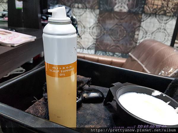 染髮之前助理先噴上這罐噴霧式的隔離劑,感覺涼涼的,